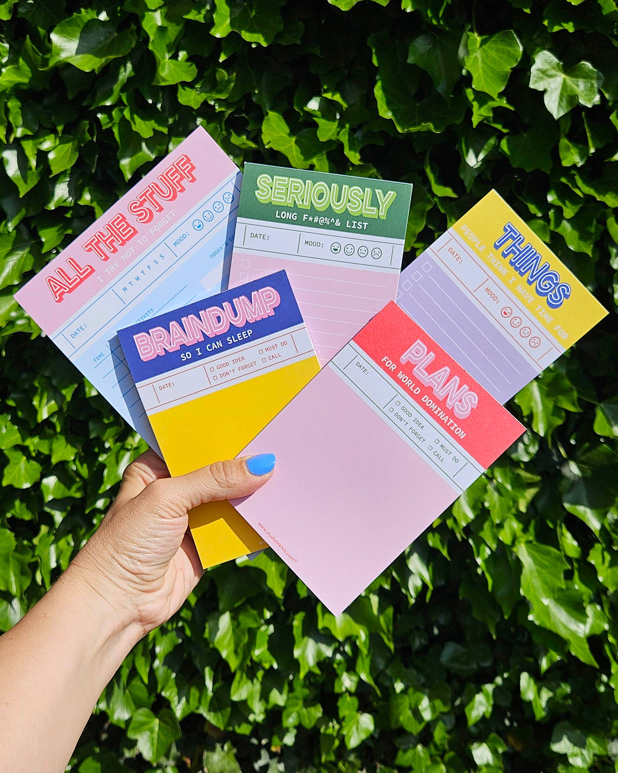 A6-kokoinen muistilehtiö Braindump on täydellinen muistilehtiö kaikille ajatuksille, muistiinpanoille ja pienille viesteille, jotka haluat saada nopeasti paperille. Olipa kyseessä ideat, to do -listat, ostoslista tai äkillinen ahaa-ajatus, tämä lehtiö auttaa pitämään pään ja arjen järjestyksessä.