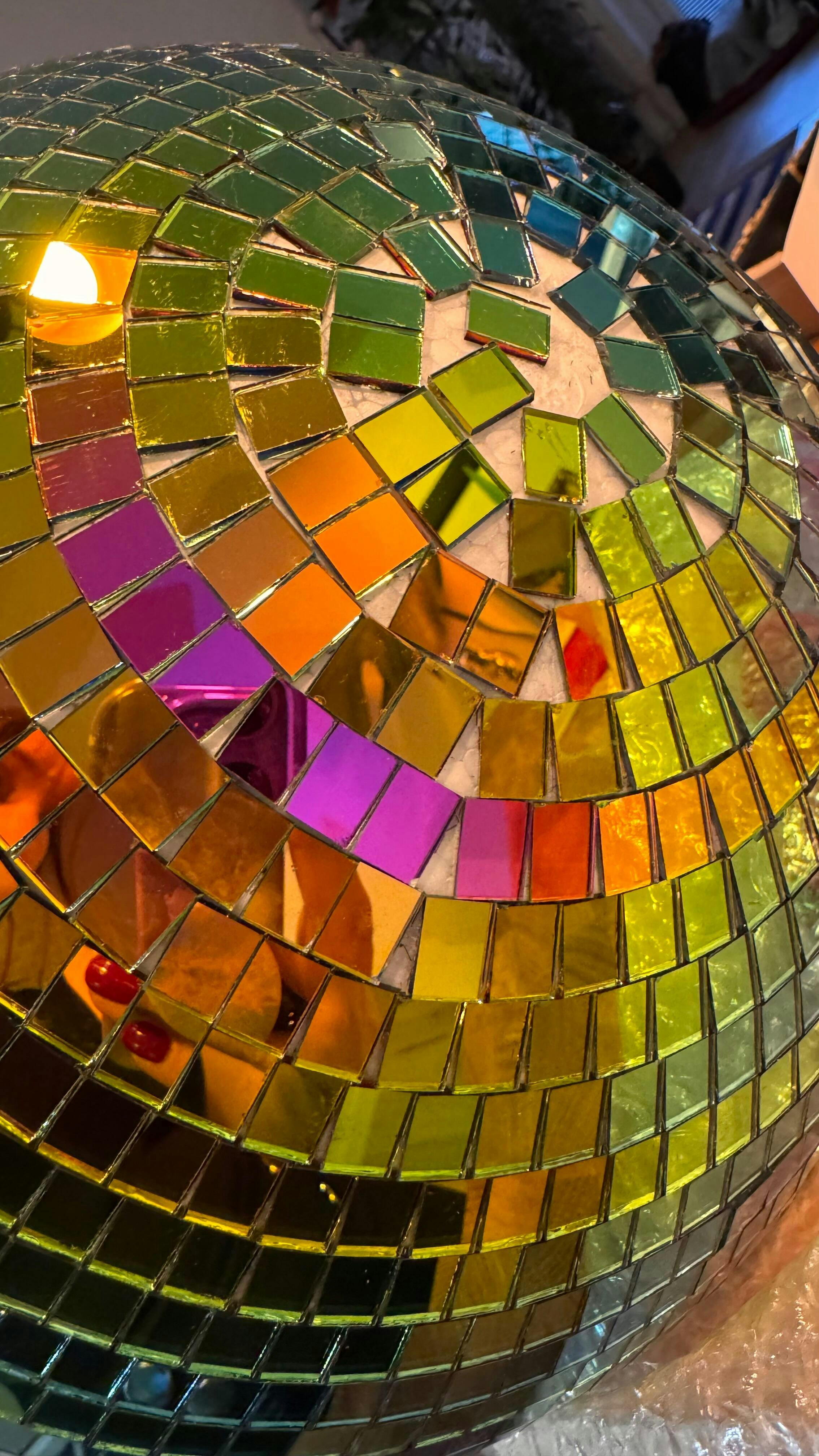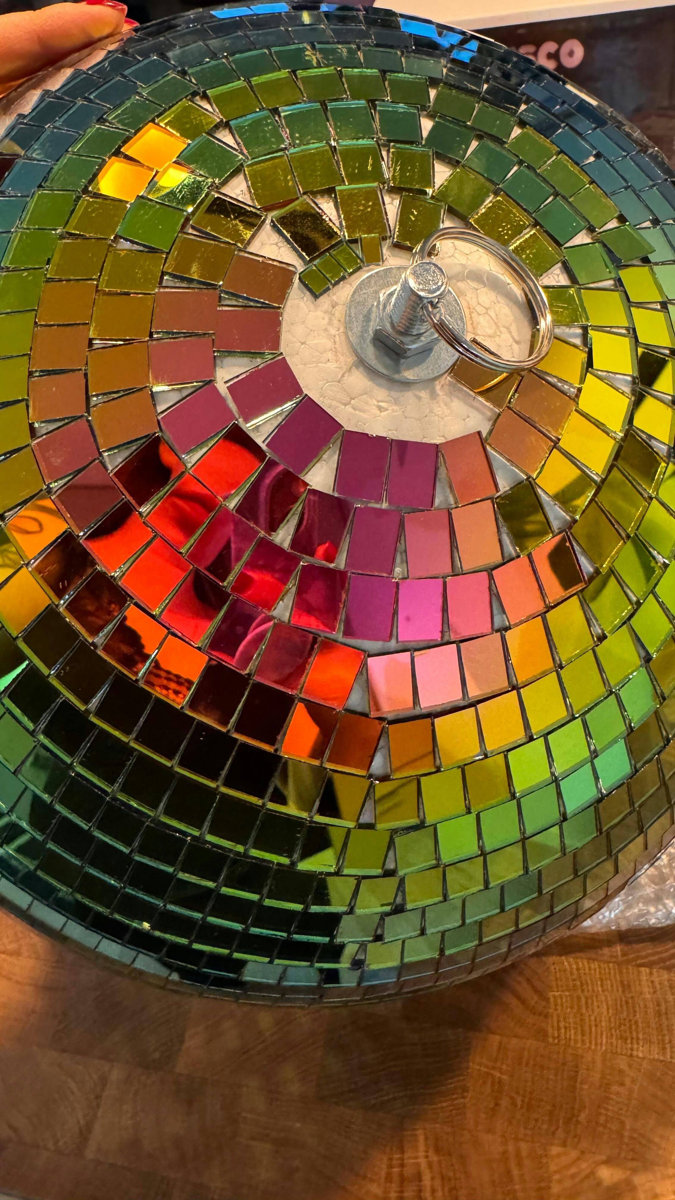 Vihreä discopallo on näyttävä ja värikäs lisä juhlatunnelmaan! Tämä 30 cm kokoinen discopallo on päällystetty peilipaloilla, jotka heijastavat valoa upeasti eri sävyissä – erityisesti vihreän, keltaisen ja violetin sävyissä. Aseta se kattoon roikkumaan tai käytä osana pöytäsomistusta, ja juhlatila herää eloon.